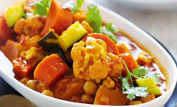 Add onion. Cook, stirring, for 3 to 4 minutes or until onion has softened. Add Moroccan seasoning, cinnamon, ginger and garlic. Cook, stirring, for 1 to 2 minutes or until fragrant. 2. Add carrot and pumpkin. Cook, stirring, for 1 minute or until combined. Add stock, apricots and tomato. Cover. Reduce heat to low. Cook, stirring occasionally, for 20 minutes or until vegetables start to soften. 3. Add cauliflower. Stir to combine. Cover. Cook for 10 minutes or until vegetables start to soften. Add chickpeas, zucchini and honey. Cover. Cook, stirring occasionally, for 10 minutes or until vegetables are tender. Season with salt and pepper. 4. Spoon on yoghurt and sprinkle with coriander sprigs. Serve with couscous.
