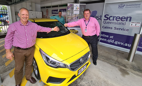 Mr Pollak received the MG, supplied by Trinity Auto, fittingly outside BreastScreen Cairns, which will receive the funds generated from walkers and ticket sales.